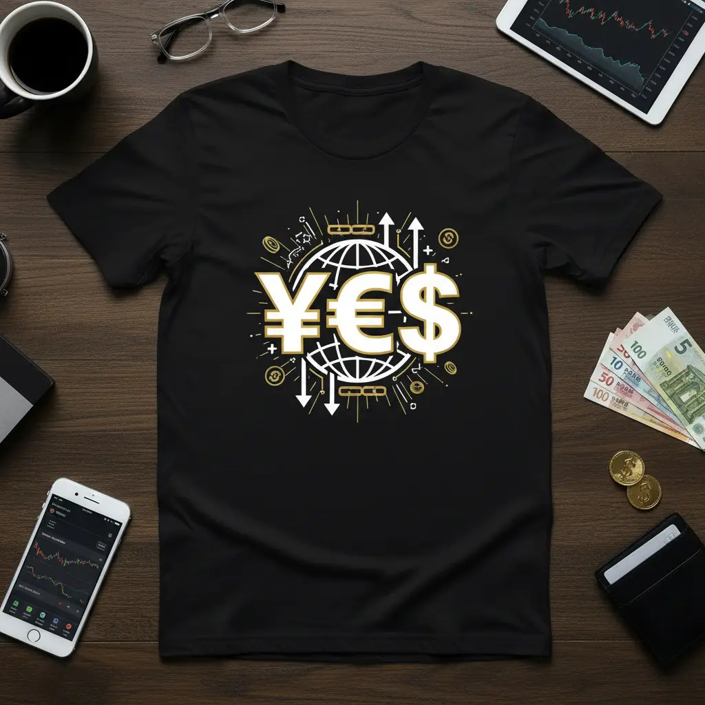 The high-quality print ensures the intricate details of the global currency design remain sharp and vibrant, wash after wash. This commitment to quality means your shirt will continue to look fantastic, serving as a constant reminder of your connection to the financial world and your drive for success.