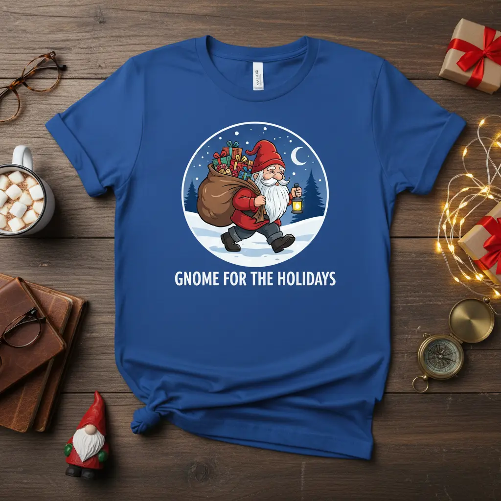The “Gnome For The Holidays” t-shirt is an ideal choice for anyone looking to embrace the festive spirit. Its cheerful design makes it a perfect gift for friends, family, or even yourself. Imagine wearing this to your next holiday party or during a cozy movie marathon – it’s sure to bring smiles and spread good cheer. This shirt is a wonderful way to showcase your love for all things Christmas and gnome-related.