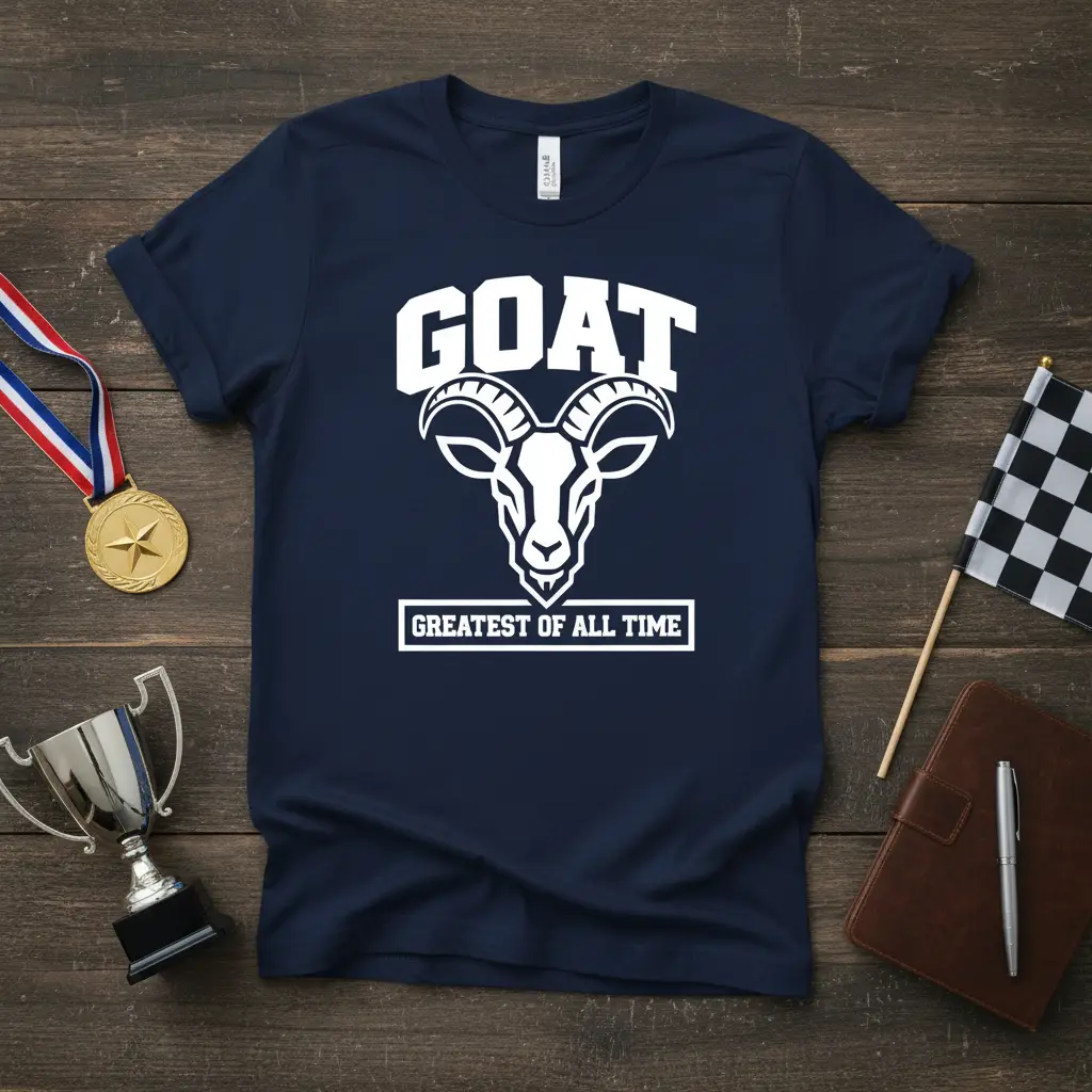 Pick from Black, Navy, Royal, Dark Heather, Red, and White to match your mood and wardrobe staples. Each colorway keeps the GOAT GREATEST OF ALL TIME design clear and photo-ready for everyday wear.