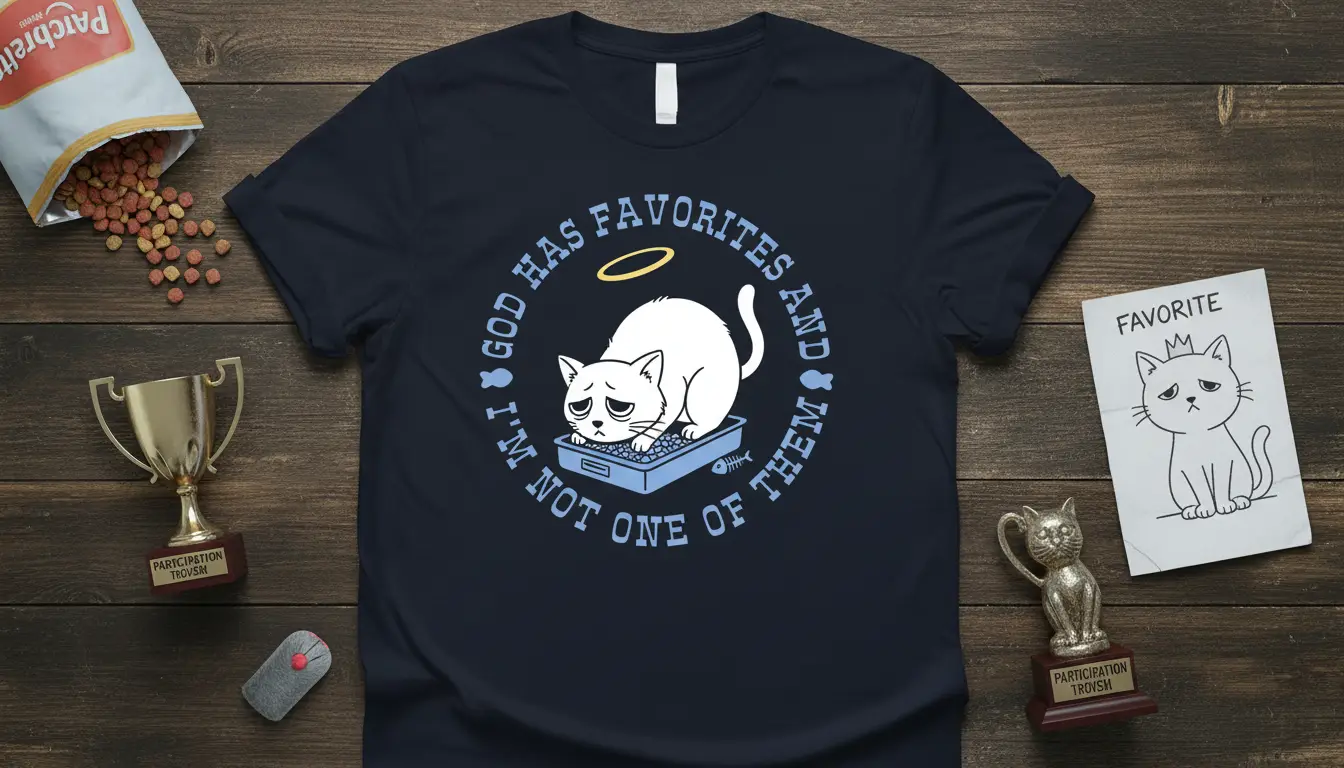 God Has Favorites And I’m Not One Of Them t-shirt is a humorous and relatable statement piece designed for all the cat lovers out there who understand the unique bond between humans and their feline companions. This tee captures that feeling of being slightly overlooked by the universe, but with a whole lot of sass and charm. It’s the perfect blend of comfort and comedic expression, making it an instant favorite for casual wear or as a standout gift.