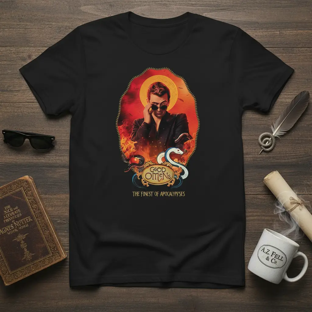 Good Omens The Finest Of Apocalypses is more than just a t-shirt; it’s a declaration of your appreciation for one of the most beloved and hilariously dark tales ever told. This design captures the essence of the beloved series, bringing to life the characters and themes that have captivated audiences worldwide. It’s crafted for fans who understand the nuanced relationship between an angel and a demon and the impending doom they are tasked with preventing. This apparel is a fantastic conversation starter for anyone who cherishes the witty dialogue and profound philosophical undertones of the original book and its acclaimed adaptation.