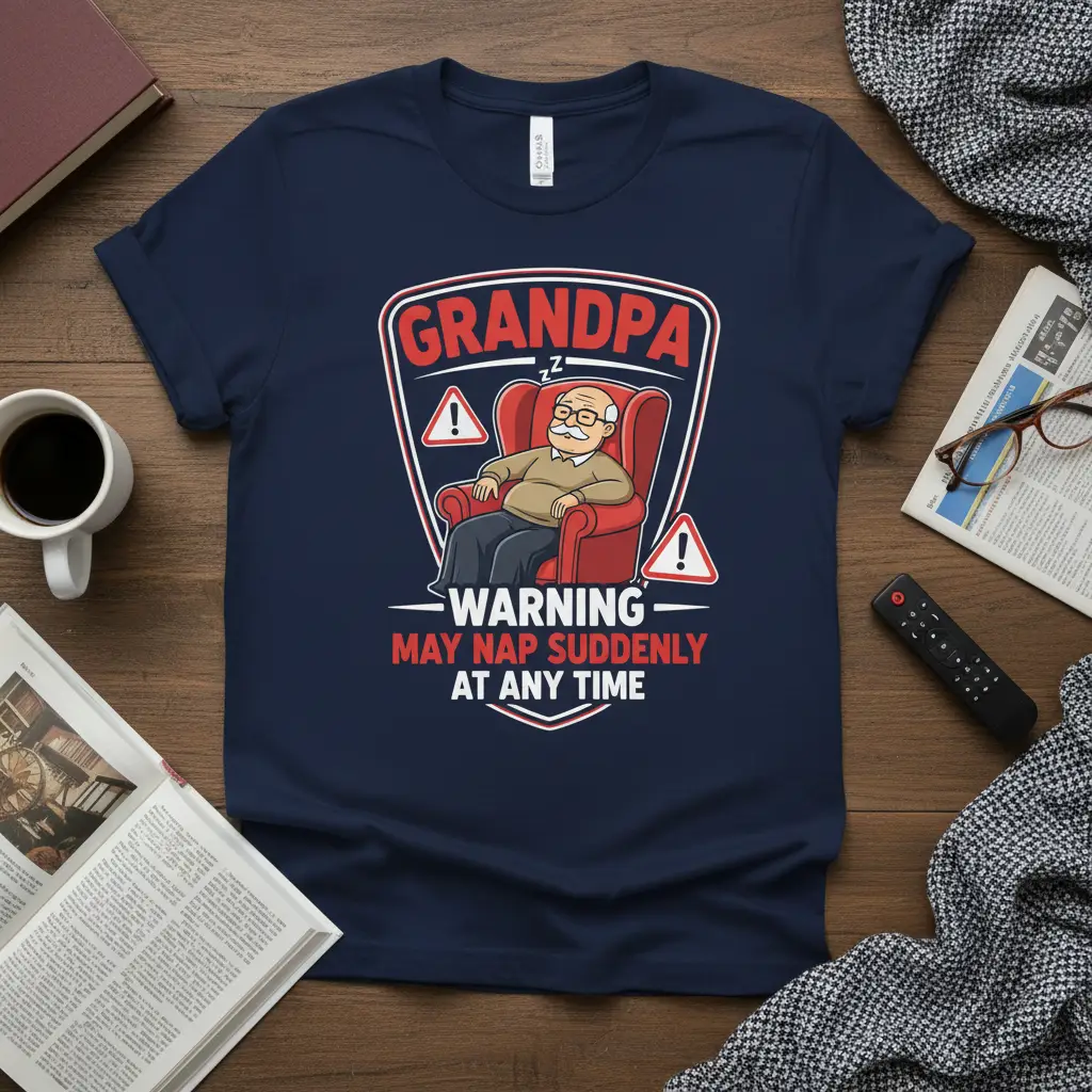 The “Grandpa Warning May Nap Suddenly At Any Time” theme resonates with anyone who knows a grandpa that cherishes his downtime. It’s a conversation starter and a guaranteed smile-inducer, perfect for casual wear or as a standout piece for family gatherings. The design is printed with high-quality inks to ensure vibrant colors and long-lasting wear, so the humor and charm endure wash after wash.