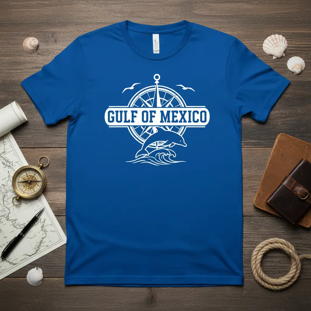 This Gulf of Mexico t-shirt is more than just a piece of clothing; it’s an expression of pride and connection to a beloved region. The combination of the iconic text, the adventurous compass, and the lively dolphin creates a powerful statement. It’s perfect for locals, tourists, and anyone who holds a special place in their heart for the Gulf Coast. Wear it proudly and let your passion for this beautiful area shine through, making every day feel like a coastal getaway. Get yours today and carry a piece of the Gulf with you!