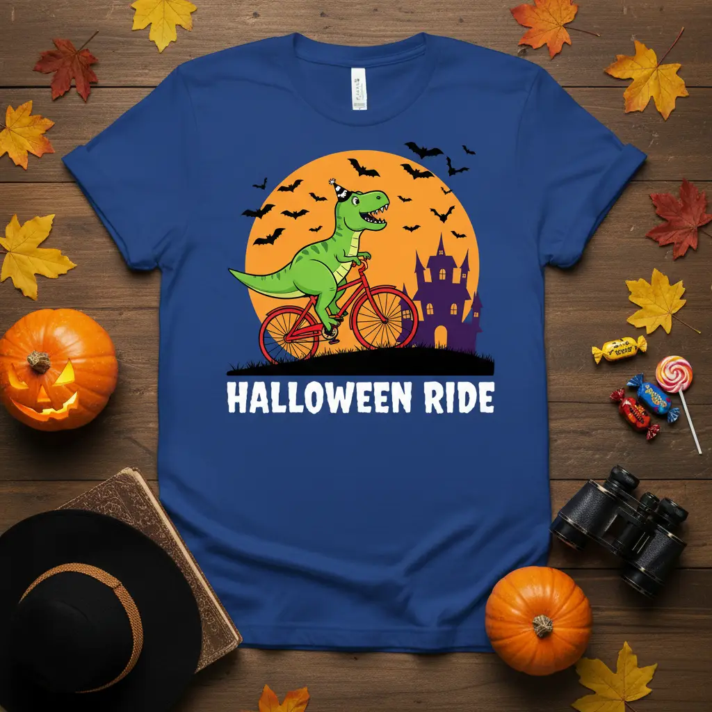 Pick from Black, Navy, Royal, Dark Heather, Red, and White to match your mood and wardrobe staples. Each colorway keeps the HALLOWEEN RIDE design clear and photo-ready for everyday wear.