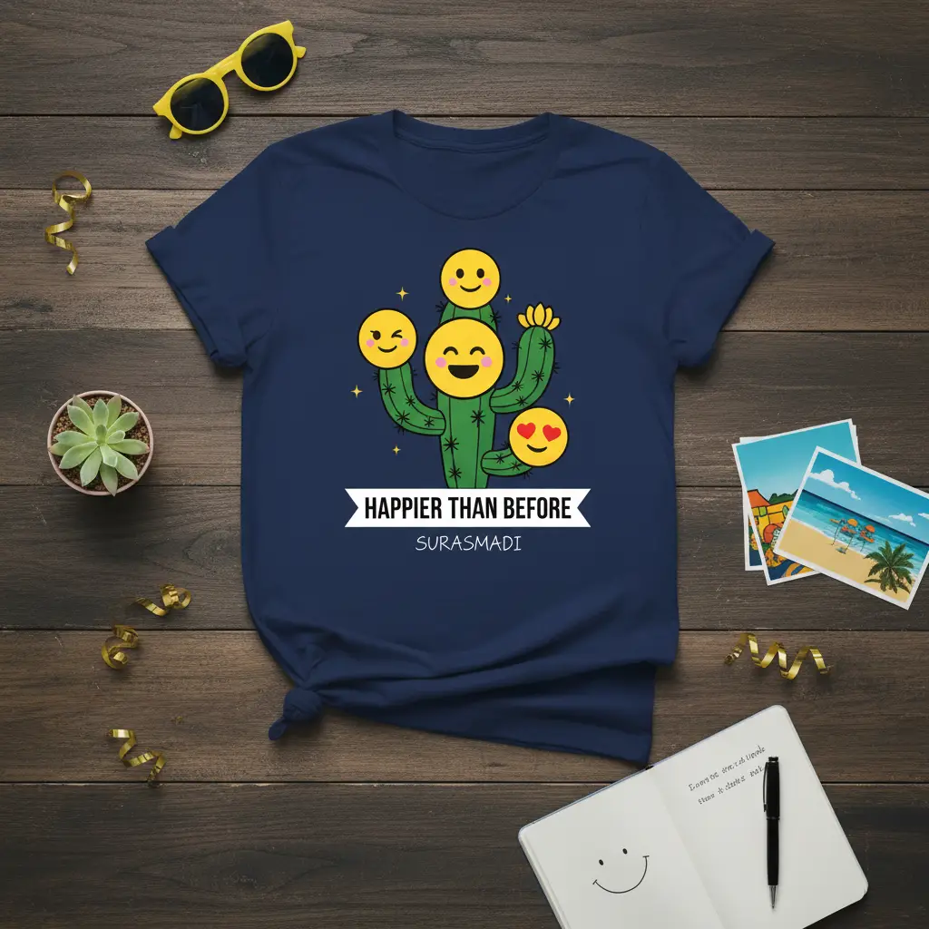 Happier Than Before, this phrase encapsulates a journey of growth, resilience, and embracing a brighter outlook. This sentiment is beautifully captured on our unique t-shirt, designed to inspire and uplift everyone who wears it. The cheerful cactus graphic, adorned with multiple happy faces, symbolizes the joy found in personal progress and the power of positive thinking. It’s more than just apparel; it’s a wearable reminder that brighter days are always ahead, and your journey is worth celebrating every step of the way.