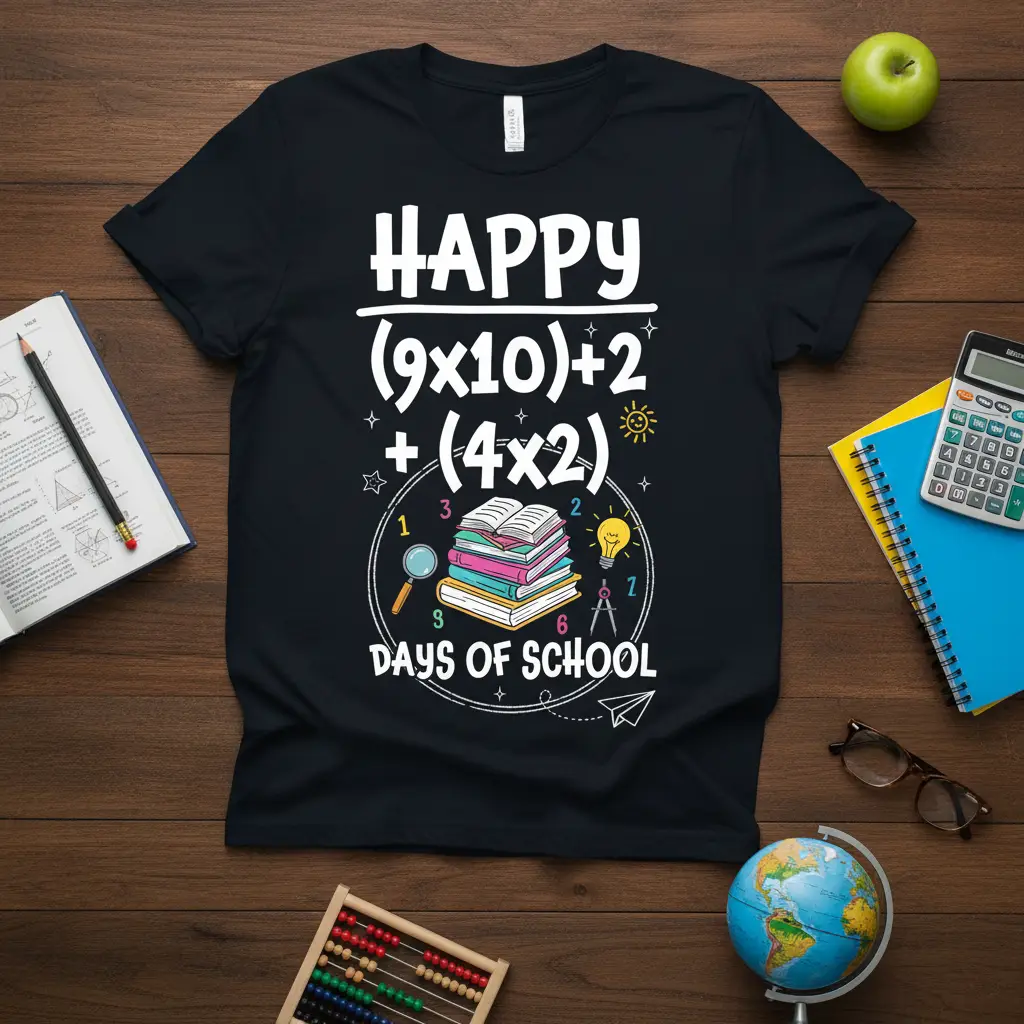 Happy (9×10)+2 + (4×2) Days of School T-Shirt is the perfect way to commemorate the end of a successful academic year. This unique design celebrates the journey through the school days with a fun mathematical twist. It’s an ideal gift for the math teacher who’s always inspiring, or for the student who’s conquered every equation thrown their way. The clever combination of text and graphics makes this tee a standout piece for anyone proud of their academic achievements.