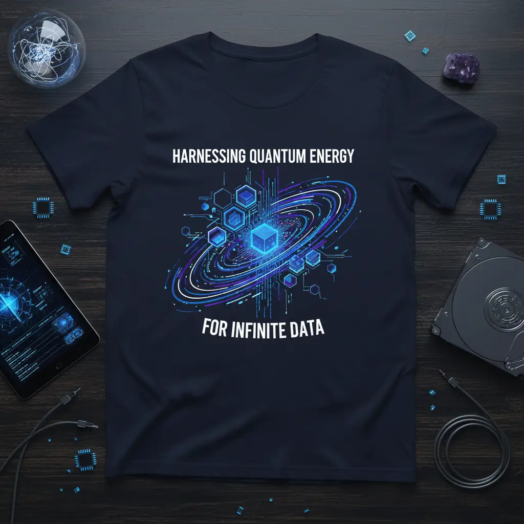 HARNESSING QUANTUM ENERGY FOR INFINITE DATA is more than just a phrase; it’s a declaration of intent for those at the forefront of scientific discovery and technological innovation. This t-shirt embodies the spirit of exploration, capturing the intricate relationship between the fundamental forces of the universe and the ever-expanding realm of digital information. It’s designed for the thinkers, the dreamers, and the doers who understand the profound implications of quantum mechanics and its potential to revolutionize our world. Wear it as a badge of honor and spark conversations about the future of science and technology.