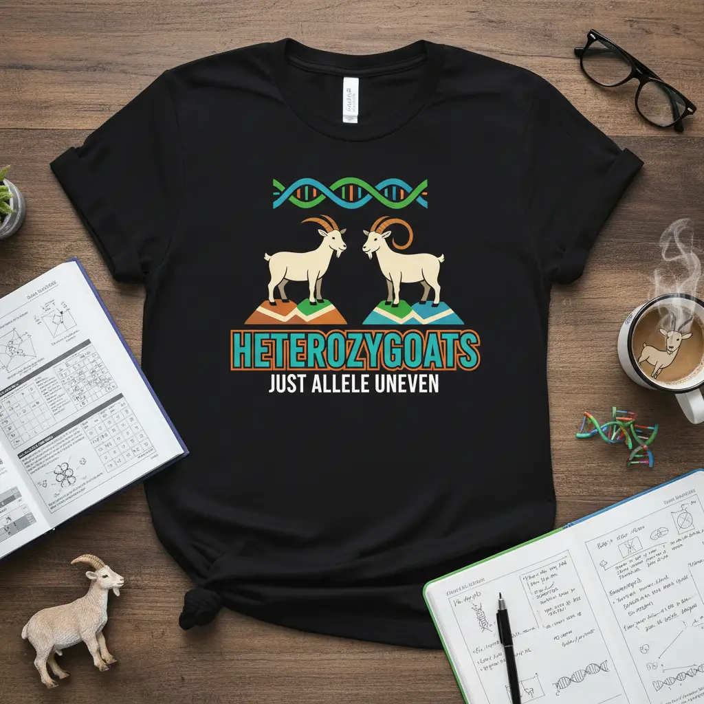 Don’t miss out on the chance to own or gift this fantastic HETEROZYGOATS JUST ALLELE UNEVEN t-shirt. It’s the perfect addition to any science enthusiast’s collection, offering a blend of comfort, style, and humor. This tee is sure to become a favorite, sparking conversations and smiles wherever you go. Grab yours now and wear your love for genetics with pride!