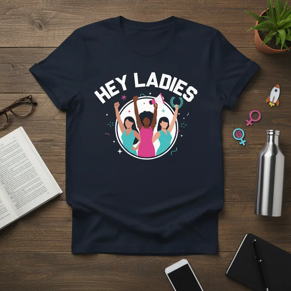 The “Hey Ladies” slogan is a rallying cry for women everywhere, promoting a message of inclusivity and shared purpose. It’s a simple yet powerful phrase that instantly conveys connection and understanding among women. This design celebrates the diversity of women and the unique strengths each brings to the collective.
