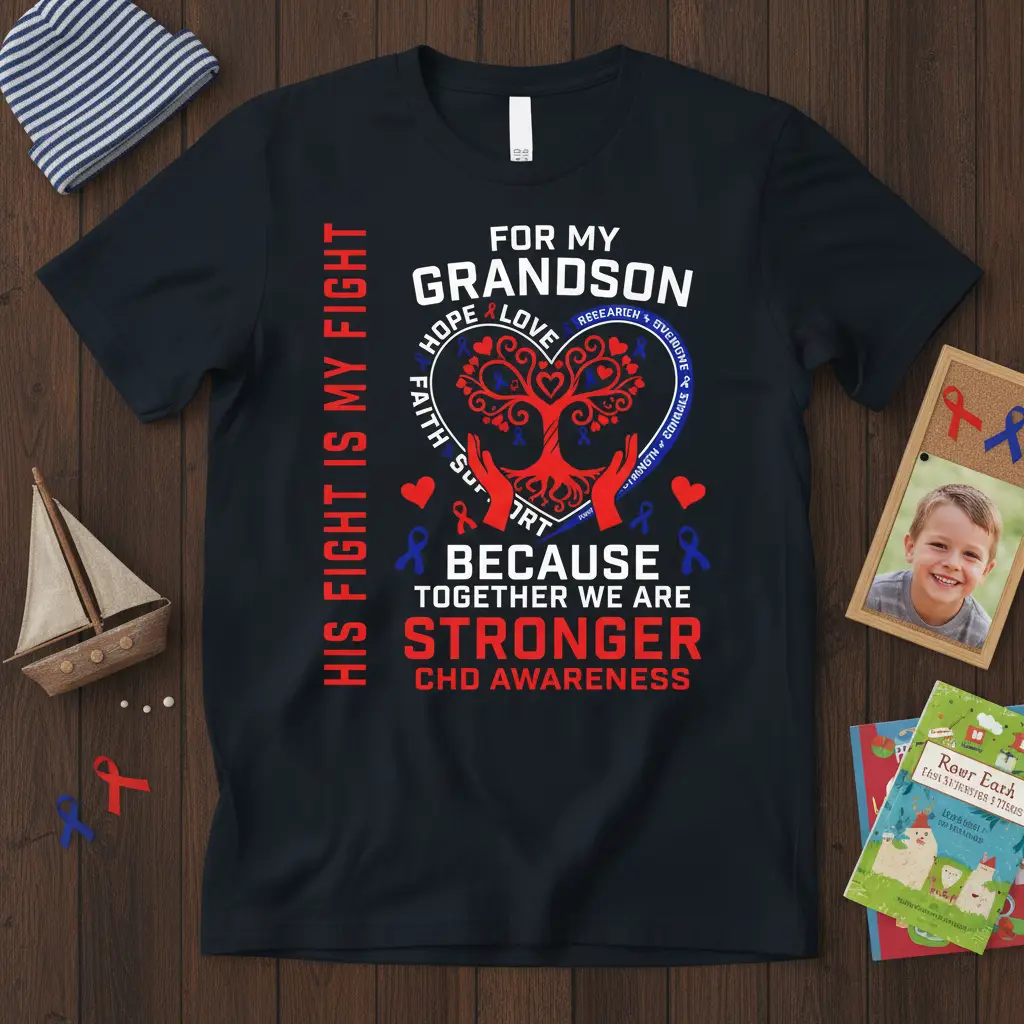 This CHD awareness t-shirt is specifically designed for those who want to show their support for their grandson, a true warrior facing congenital heart disease. The design is a testament to the love and dedication of families who navigate the complexities of CHD treatment and recovery. It’s a way to connect with other families, share experiences, and build a stronger community dedicated to finding cures and improving lives.