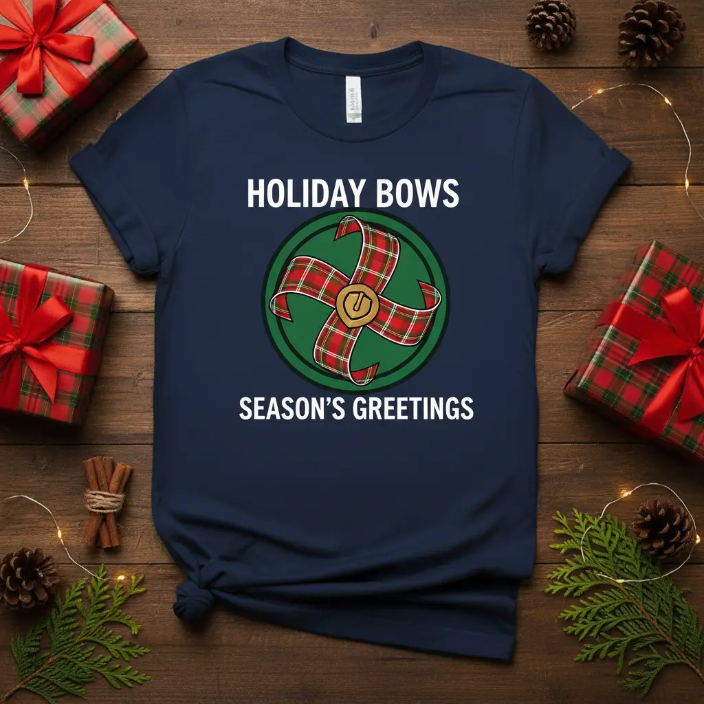 Holiday Bows Season’s Greetings T-Shirt for Festive Occasions