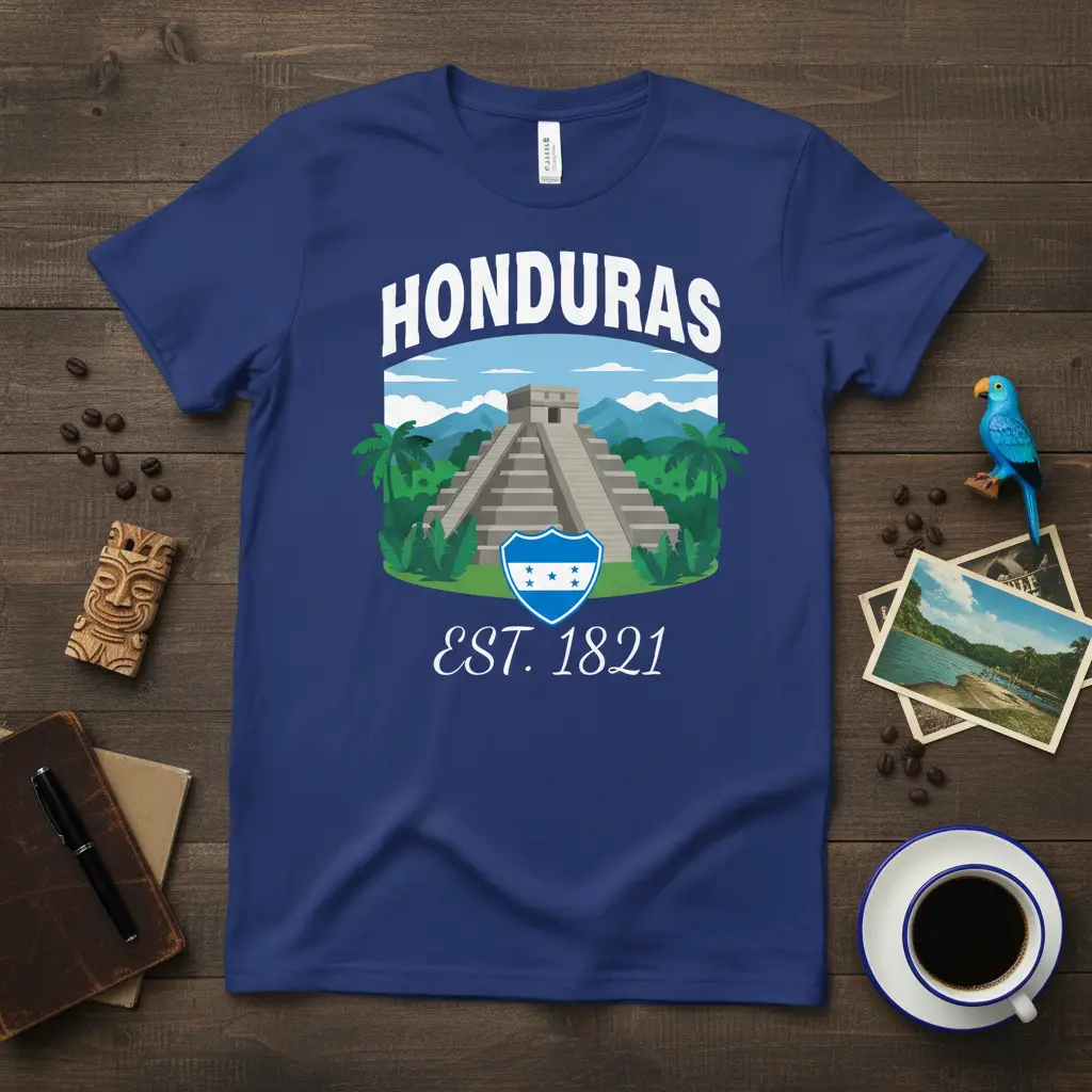 HONDURAS EST. 1821, this t-shirt is a proud declaration of heritage and a stylish nod to travel enthusiasts. Featuring an iconic depiction of Mayan ruins and the vibrant Honduran flag, this garment is designed to resonate with those who cherish their roots or have a passion for exploring the rich history of Central America. It’s more than just apparel; it’s a wearable story, a conversation starter, and a beautiful way to connect with a significant part of the world. This tee embodies the spirit of discovery and the enduring legacy of Honduras.
