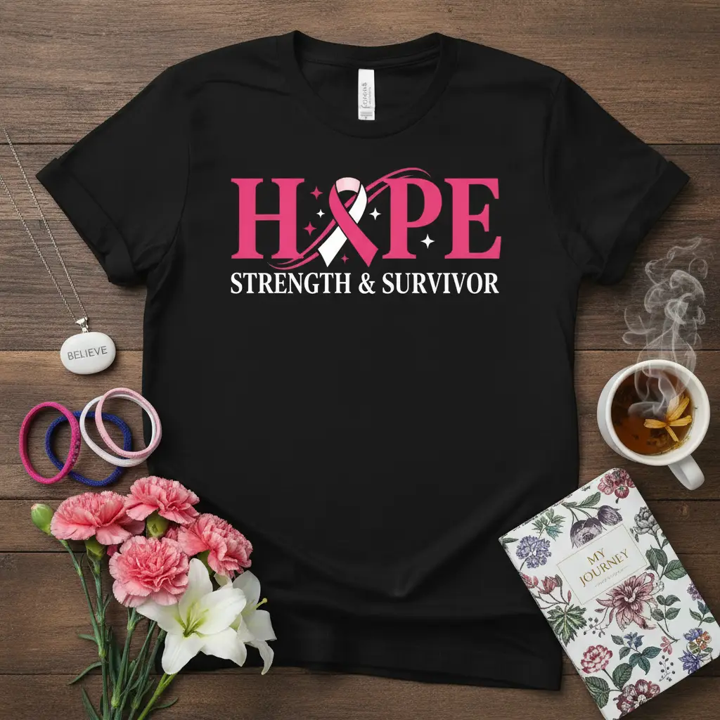 Hope Strength & Survivor Breast Cancer Awareness T-Shirt
