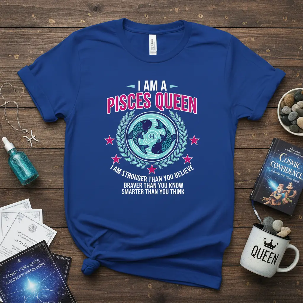 For those born under the sign of Pisces, known for their compassion, artistic nature, and intuitive depth, this shirt offers a different facet of their personality. It highlights the often-unseen resilience and sharp intellect that lies beneath the surface. This design is a celebration of that duality, showcasing that a Pisces Queen is not only gentle but also incredibly formidable.