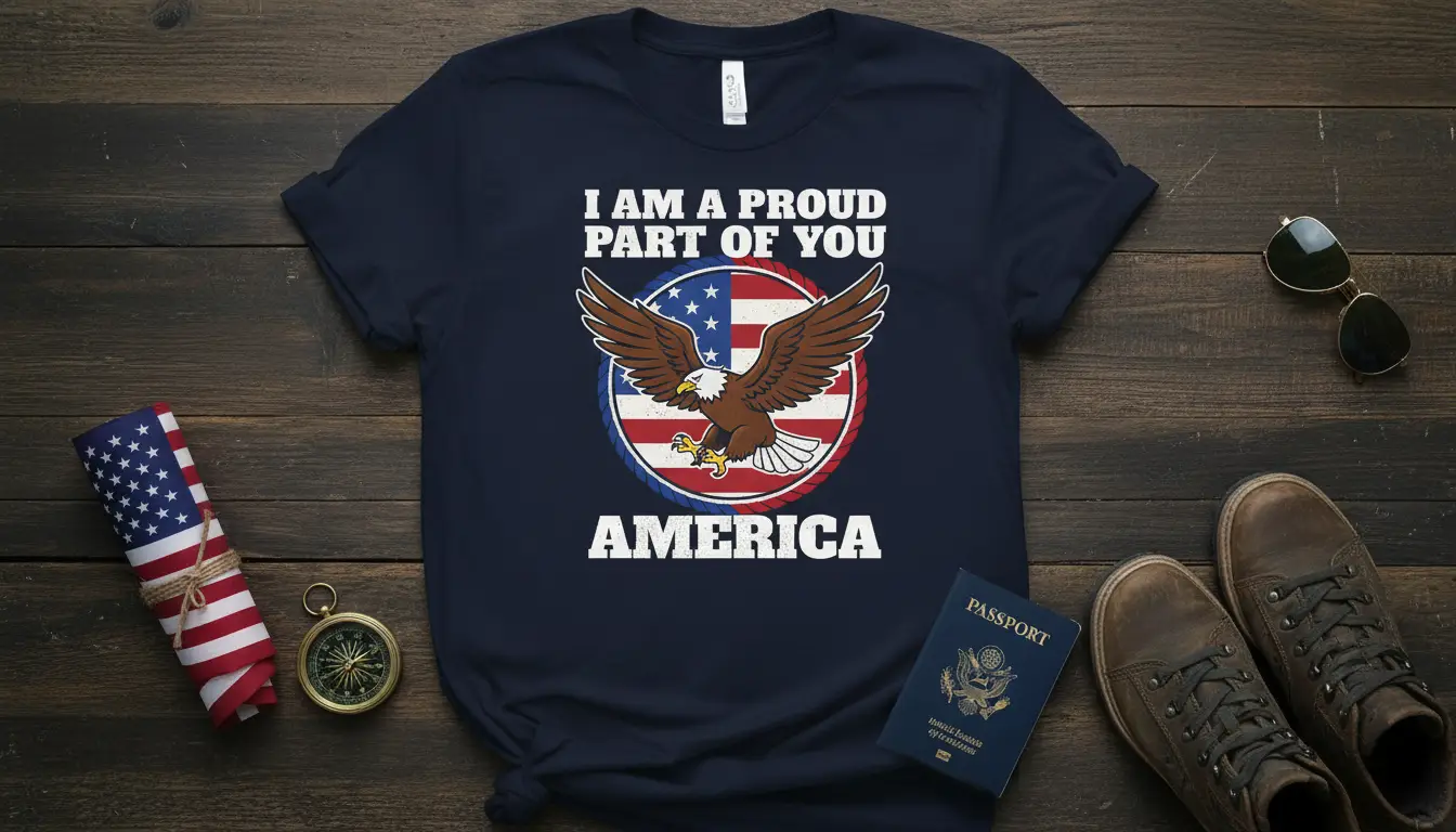 This striking t-shirt is emblazoned with the powerful message “I AM A PROUD PART OF YOU AMERICA,” making it an ideal choice for anyone who feels a deep connection to the USA. The design features a majestic eagle, a timeless symbol of freedom and strength, soaring against a backdrop of the iconic American flag. This visual representation is crafted to evoke feelings of patriotism and national unity, making it a meaningful addition to your wardrobe. Wear it to express your personal values and your commitment to the ideals that America represents.