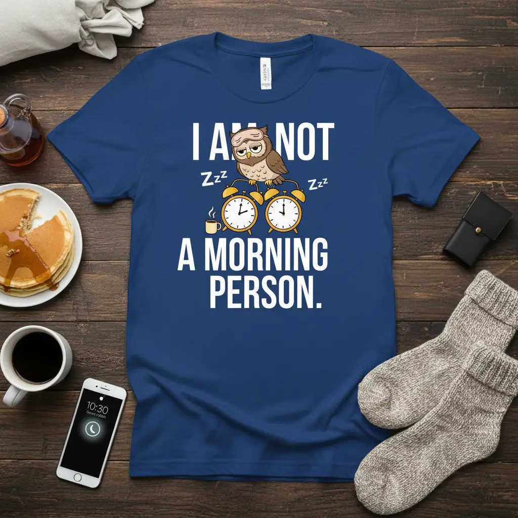 Don’t let the morning rush define you. With the “I Am Not A Morning Person” t-shirt, you can proudly display your preference for later hours and enjoy a comfortable, stylish way to express yourself. This tee is more than just clothing; it’s a statement piece that celebrates individuality and a good sense of humor. It’s a perfect gift for friends, family, or anyone who can relate to the struggle of waking up. Add this fun and relatable shirt to your collection and wear your sleepy pride. Order yours now and start your day (or afternoon!) right.