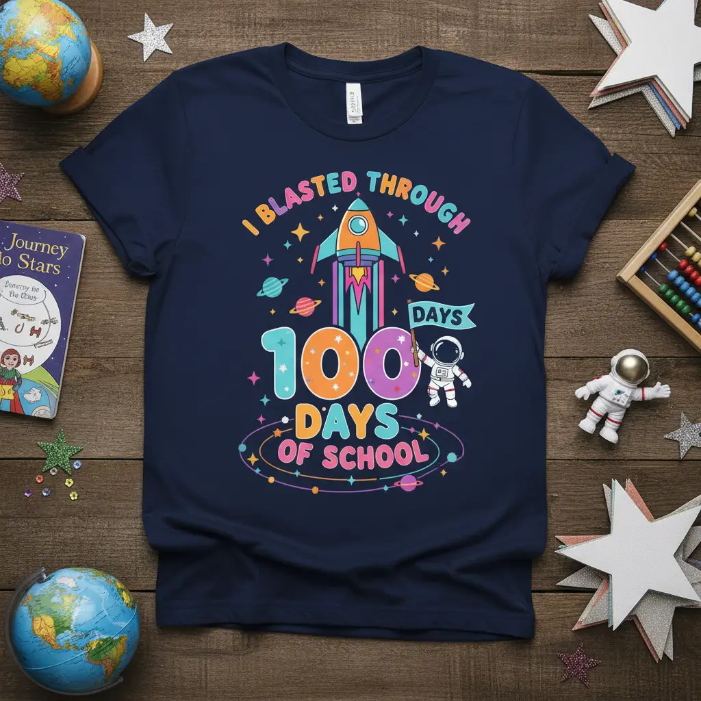 I Blasted Through 100 Days of School with this amazing t-shirt, designed to celebrate this incredible educational milestone! This vibrant and fun graphic tee captures the excitement of reaching the 100-day mark in style. Featuring a playful astronaut, a dynamic rocket, and colorful celestial elements, it’s the perfect way for students and teachers to showcase their achievement. It’s more than just apparel; it’s a wearable badge of honor for all the hard work and learning that has taken place. Get ready to make a statement and celebrate your journey through the school year.