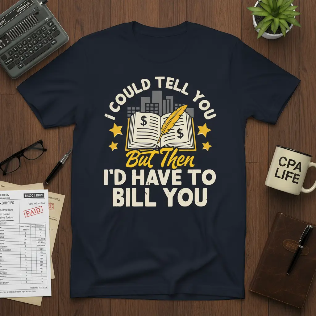 I Could Tell You But Then I’d Have To Bill You t-shirt is designed for those who appreciate a good dose of professional humor and a clever quip. This shirt perfectly encapsulates the mindset of many in the accounting and finance world, offering a witty response to any inquisitive question that might lead to billable hours. It’s more than just apparel; it’s a statement piece that resonates with the daily grind and the specialized knowledge of financial professionals. Show off your profession with pride and a touch of playful sarcasm.