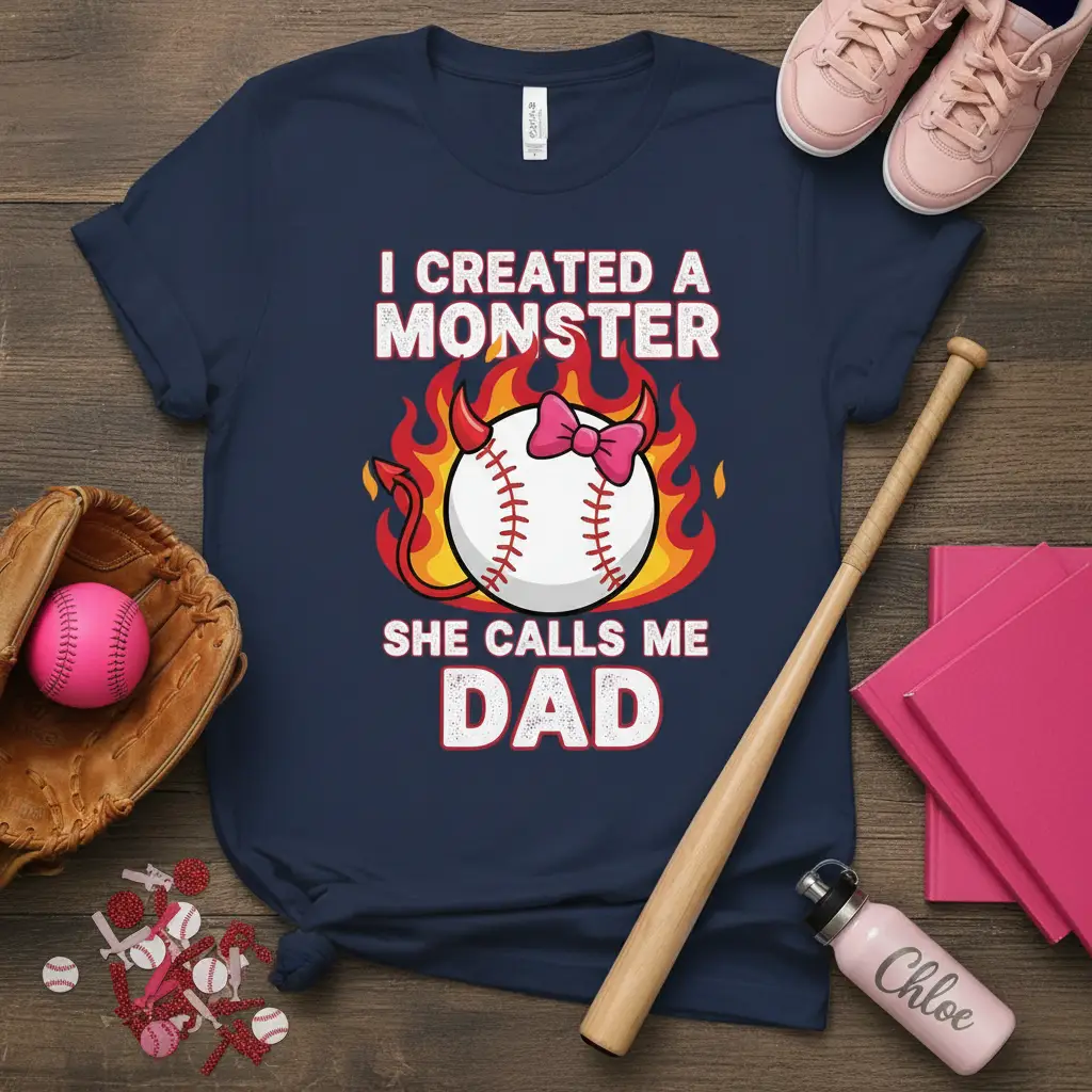 I Created A Monster She Calls Me Dad Baseball T-Shirt