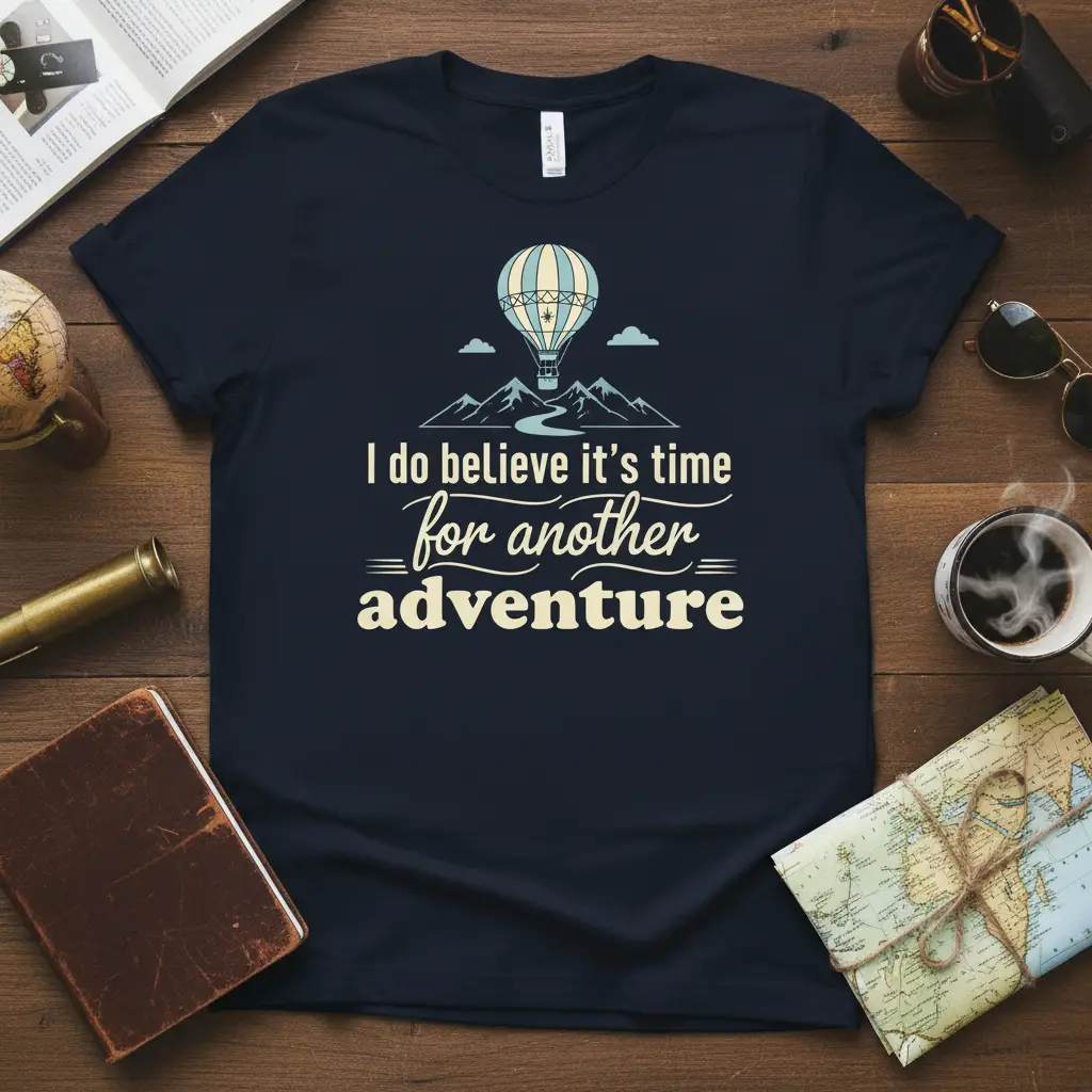Don’t let another moment pass without planning your next great escape. This “I do believe it’s time for another adventure” t-shirt is your perfect companion for embracing the world and all its wonders. It’s time to pack your bags, chase the horizon, and make every journey count. Order yours today and let the adventures begin!