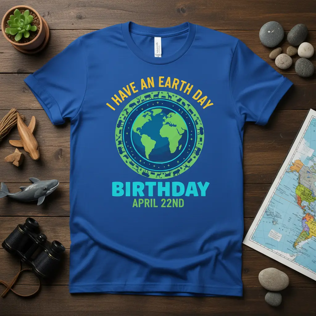 This apparel is perfect for casual outings, environmental rallies, or simply enjoying a day outdoors. It’s a versatile piece that can be dressed up or down, offering comfort and style. Let your t-shirt do the talking and spread the word about celebrating your birthday in harmony with Earth Day.