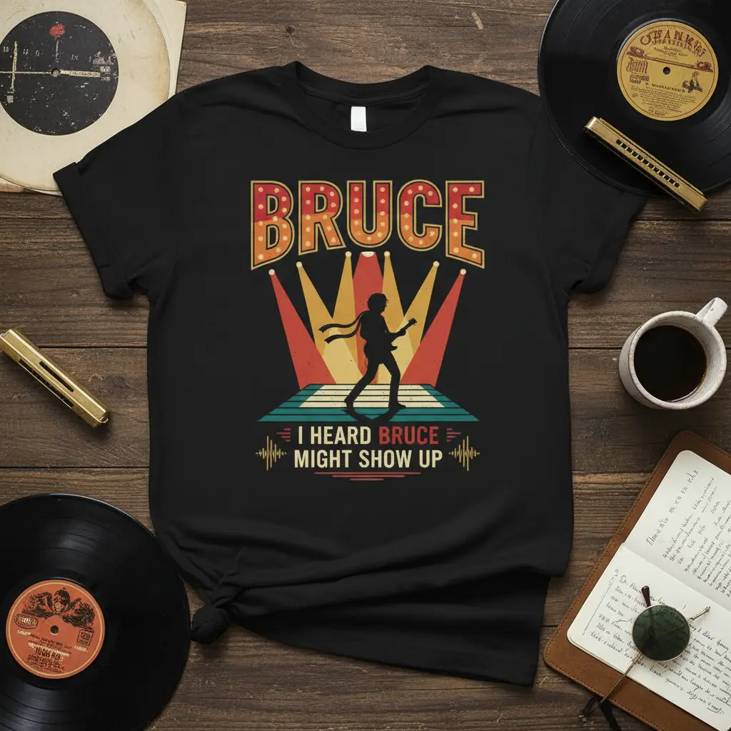 I HEARD BRUCE MIGHT SHOW UP on this iconic t-shirt, perfect for any devoted fan of legendary rock music. This design captures the spirit of live performances and the anticipation of seeing a musical icon take the stage. It’s more than just apparel; it’s a statement for those who appreciate classic rock anthems and the unforgettable energy of a concert. Wear it proudly to your next show or any casual outing to showcase your musical passion.
