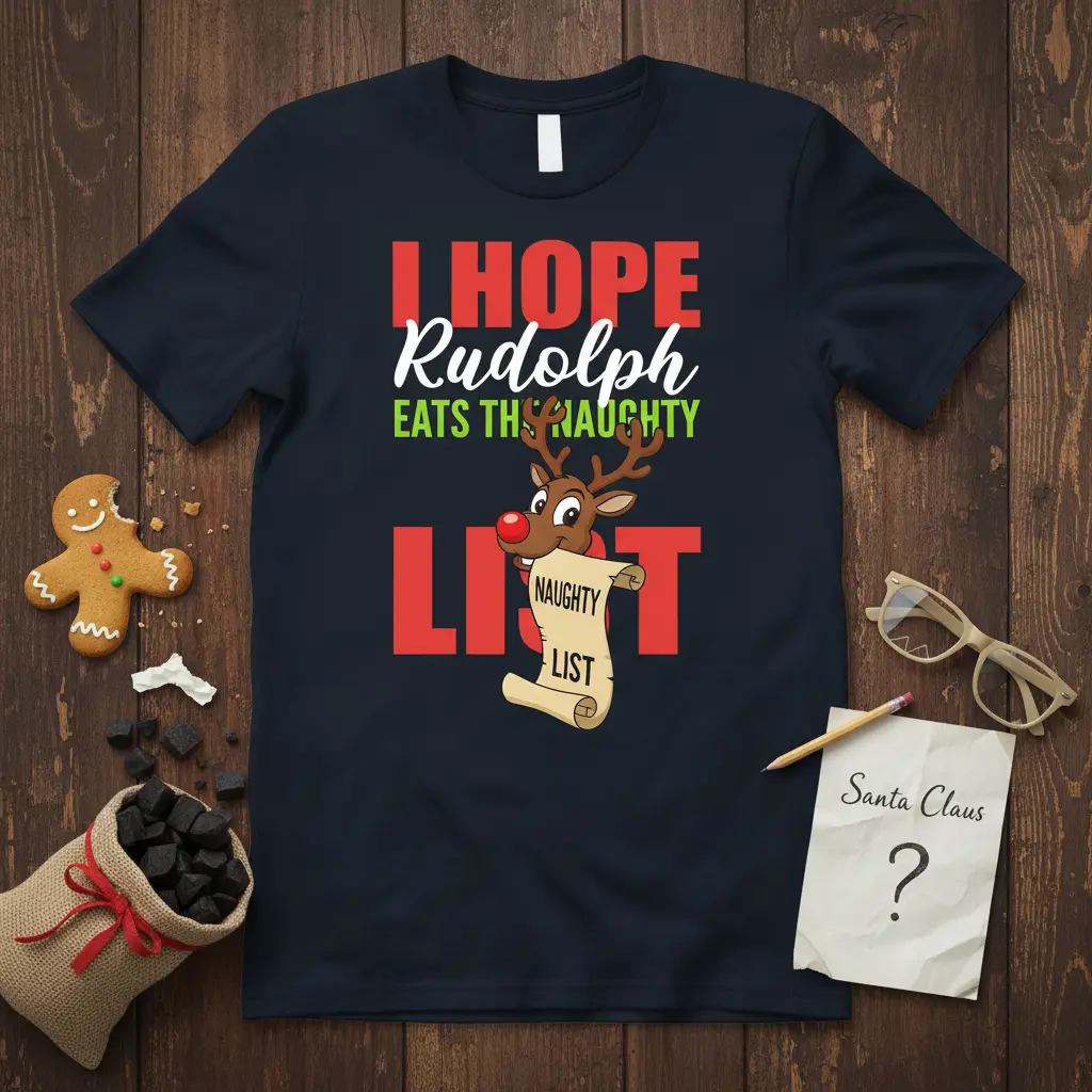 I HOPE Rudolph EATS THE NAUGHTY LIST this holiday season with a t-shirt that’s sure to get chuckles. This unique design captures the playful spirit of Christmas, blending festive cheer with a touch of mischievous humor. It’s the perfect way to show off your love for the holidays and your appreciation for a good laugh. Whether you’re attending a holiday party or just enjoying a cozy night in, this tee is designed to bring joy and spark conversations. Embrace the festive season with a piece that truly stands out and spreads merriment.