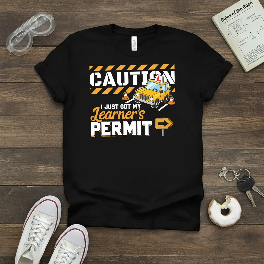 The graphic elements are designed to be engaging and visually appealing, making this t-shirt a standout piece. It’s perfect for casual outings, family gatherings, or even as a fun outfit for driving practice sessions. This shirt makes the accomplishment of obtaining a learner’s permit feel celebrated and special.