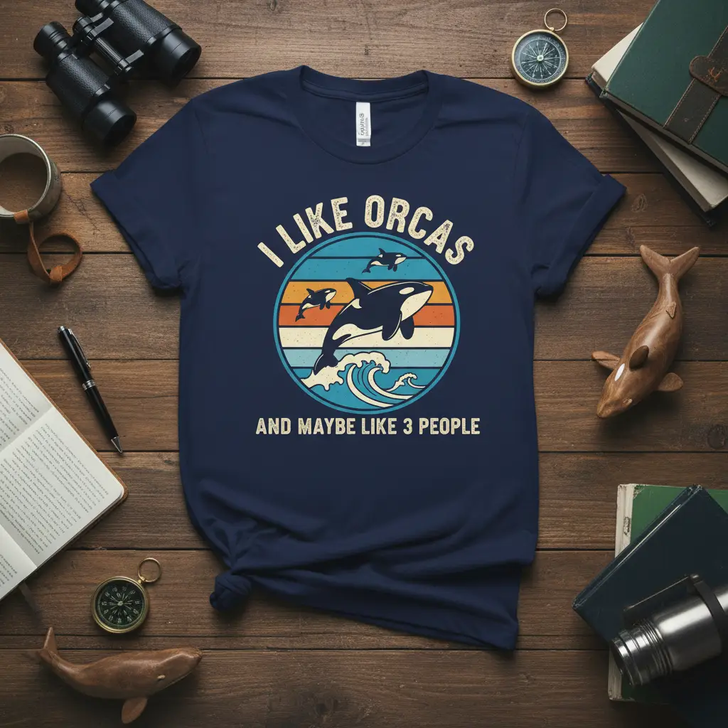 I LIKE ORCAS AND MAYBE LIKE 3 PEOPLE—this is the ultimate statement for anyone who finds their greatest joy in the company of these magnificent marine creatures. This t-shirt is more than just apparel; it’s a declaration of love for the ocean and its most iconic inhabitants. The design perfectly captures a whimsical sentiment, blending a passion for orcas with a touch of relatable humor about human interactions. It’s crafted for comfort and style, making it an ideal choice for casual wear or as a standout piece for any occasion. Show off your unique personality and your deep appreciation for the ocean’s apex predators with this eye-catching tee.