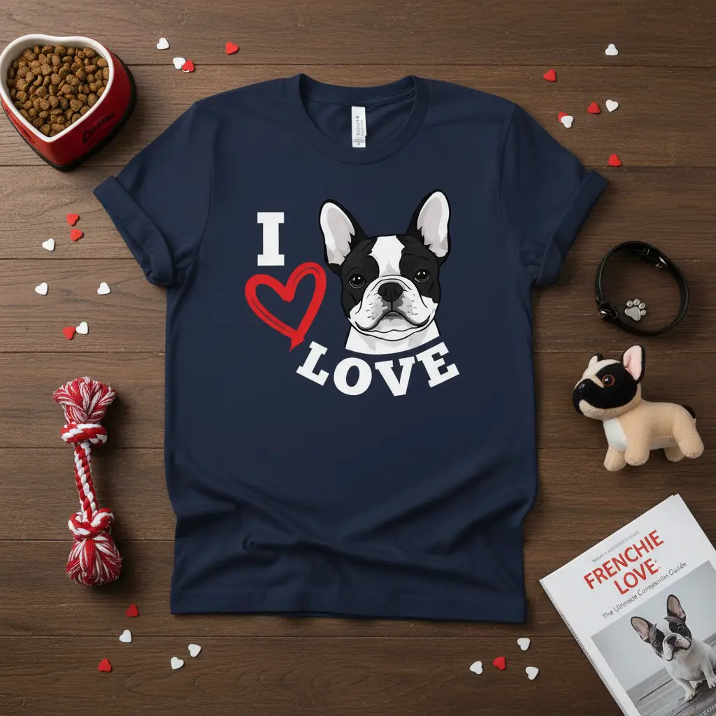 This shirt is a perfect representation of the strong connection people have with their French Bulldogs. The graphic is designed to be instantly recognizable and appealing, capturing the essence of this breed’s personality. It serves as a daily reminder of the joy and companionship that French Bulldogs bring into our lives. The combination of the iconic “I LOVE” symbol and the adorable Frenchie face creates a universally understood message of adoration.
