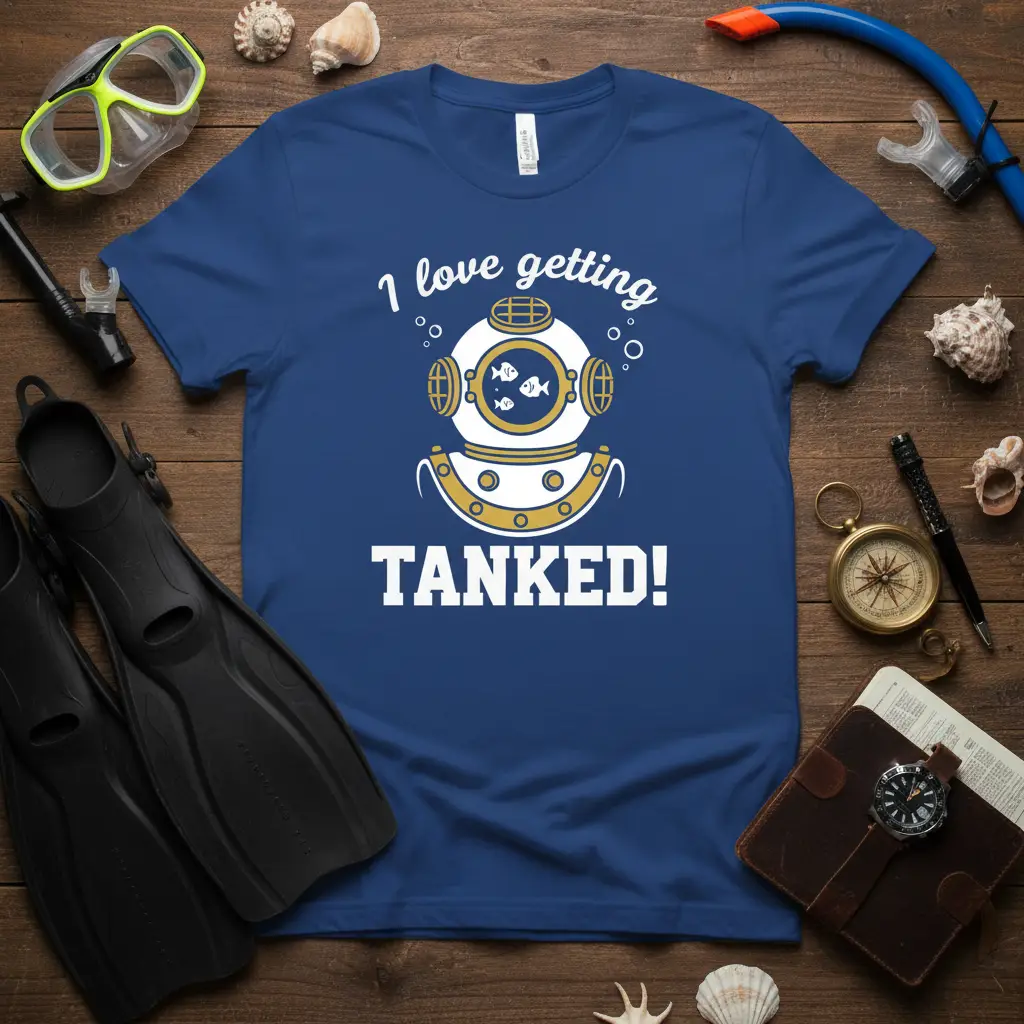 Don’t miss out on the opportunity to own this fantastic “I love getting TANKED!” t-shirt. It’s the perfect way to showcase your love for diving and the incredible beauty of the underwater world. Whether you’re buying it for yourself or as a gift, this shirt is guaranteed to be a hit. Dive into our selection and grab yours today to add a splash of oceanic adventure to your style!