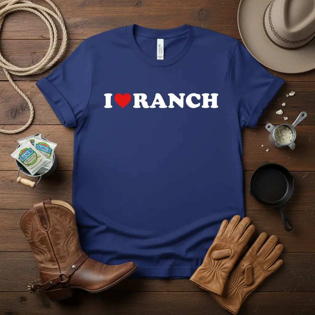 This design speaks volumes without saying much, embodying the spirit of ranch life. It’s a tribute to the cowboys, cowgirls, and everyone involved in the agricultural and equestrian communities. The simplicity of the “I Love Ranch” message combined with the iconic heart symbol makes it universally understood and appreciated by those who share this passion. It’s a conversation starter and a declaration of belonging.