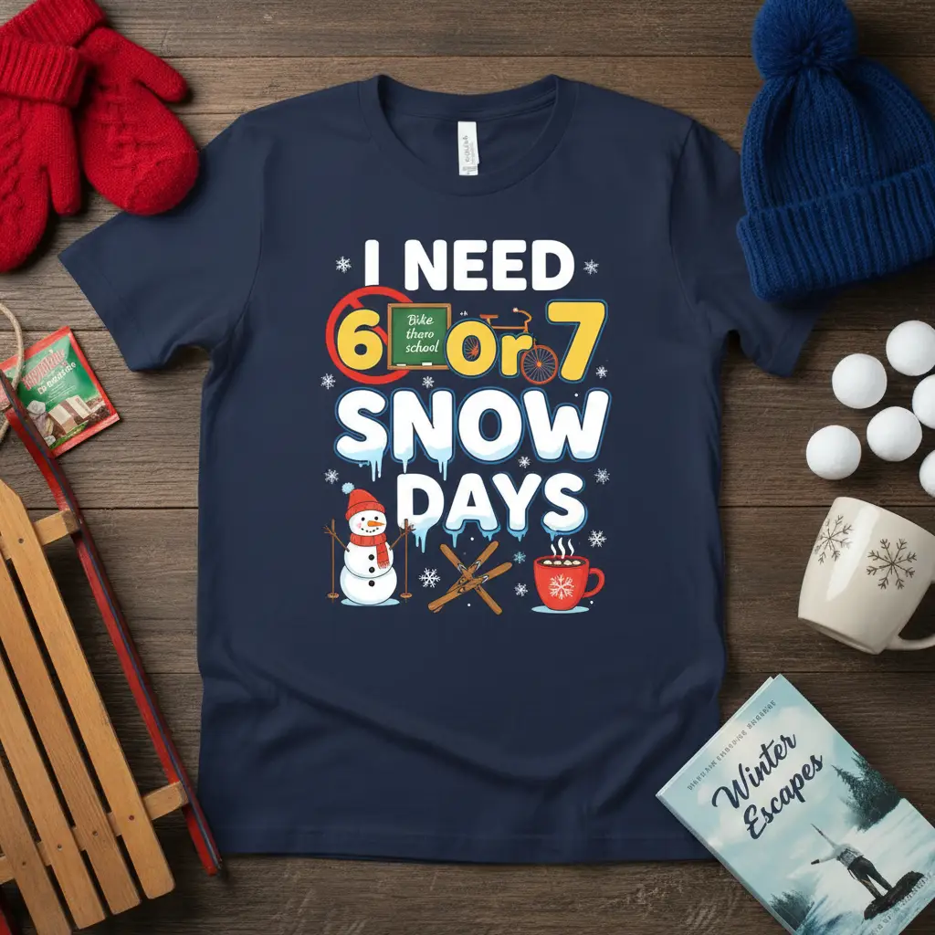 The “I NEED 6 or 7 SNOW DAYS” sentiment resonates with many, making it an excellent gift idea. Surprise a teacher, student, or any winter enthusiast with a present that’s both fun and functional. It’s a thoughtful way to show you care and to bring a little extra joy into their winter season. This shirt is sure to become a cherished item for its unique design and comfortable wear.