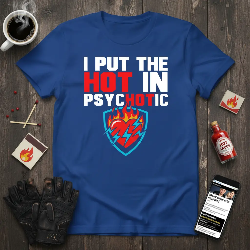 This “I PUT THE HOT IN PSYCHOTIC” t-shirt is more than just clothing; it’s a conversation starter and a testament to your confident spirit. It’s perfect for anyone who loves to express themselves with a bit of edge and a lot of humor. Add this unique piece to your collection and wear your personality with pride. Get yours today and embrace the heat!