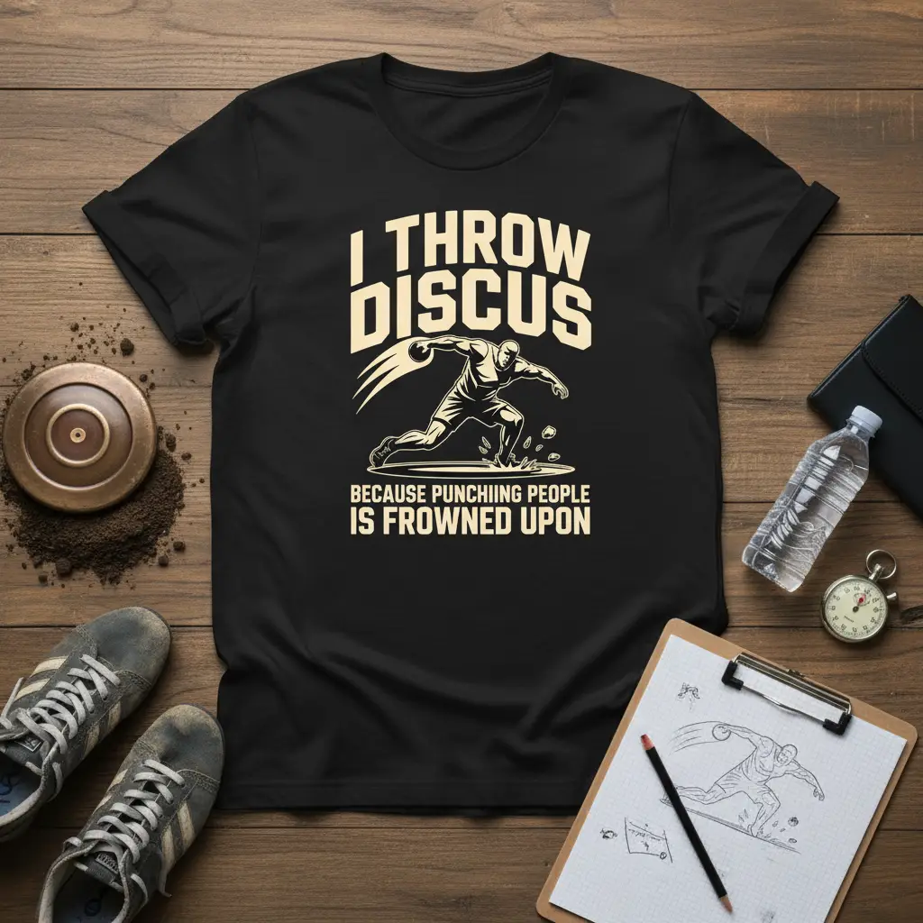 Don’t miss out on the opportunity to own this fantastic “I Throw Discus Because Punching People Is Frowned Upon” t-shirt. It’s the ultimate way to express your dedication to the sport and your sense of humor simultaneously. Whether you’re buying it for yourself or as a gift for a fellow athlete, this shirt is guaranteed to be a favorite. Add this unique piece to your collection and wear your passion with pride and a smile. Order yours today and let the world know how you channel your energy!