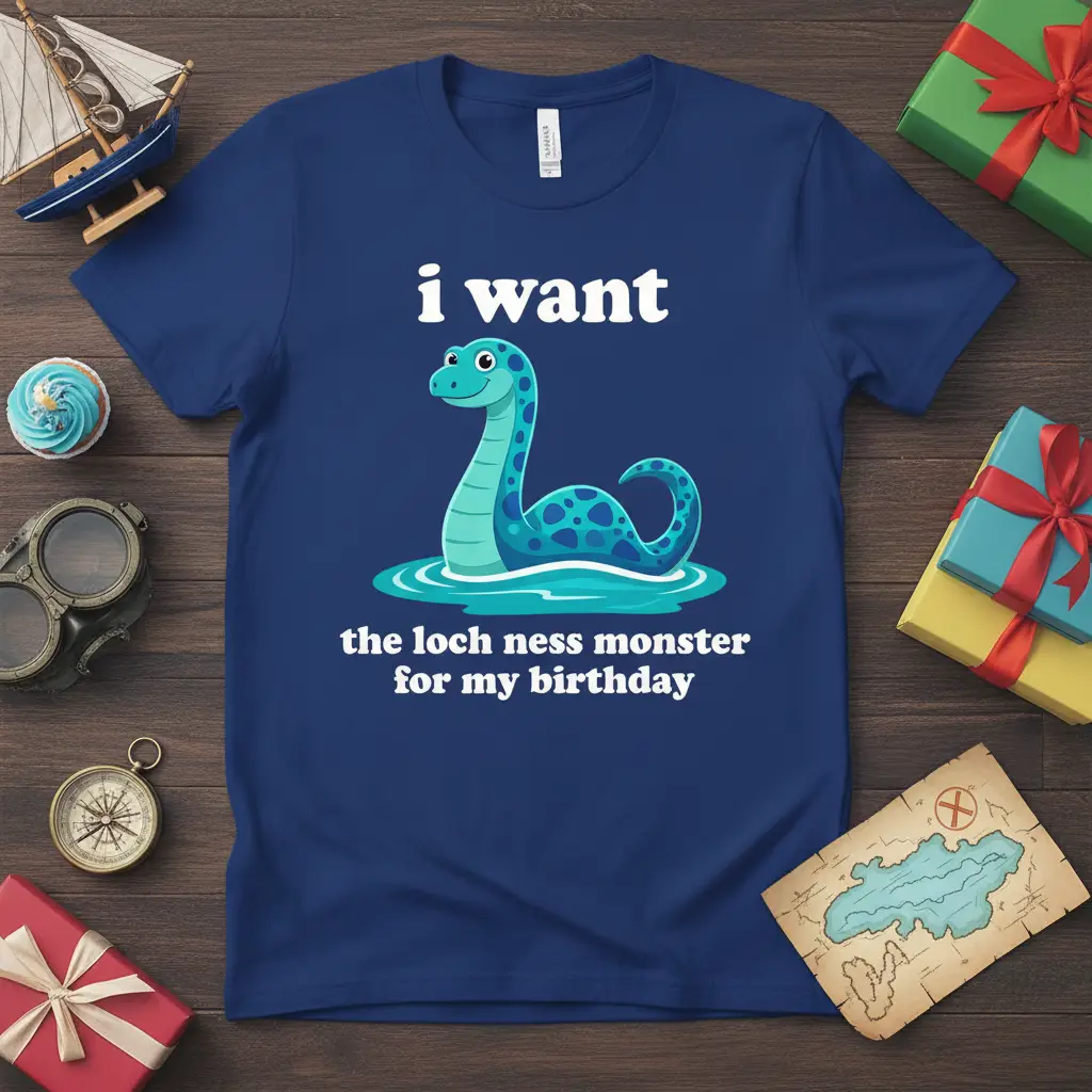 I want the Loch Ness Monster for my birthday statement tee is here to make your next celebration legendary and full of mythical charm. This unique t-shirt is designed for those with a sense of humor and a fascination for the world’s most famous cryptid. It’s the perfect way to express your ultimate birthday wish, blending playful innocence with a touch of mysterious allure. Get ready to stand out and spark conversations with this eye-catching piece that guarantees a memorable birthday. It’s more than just apparel; it’s a conversation starter and a testament to your love for the unexplained. Grab yours and make your birthday wishes a reality.