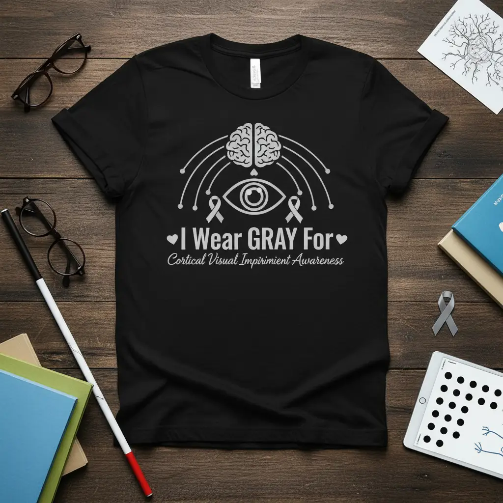 This t-shirt serves as a powerful tool for advocacy, helping to shed light on a condition that often goes misunderstood or undiagnosed. By wearing this “I Wear GRAY For” statement, you become a walking billboard for CVI awareness, reaching people who might otherwise never encounter information about it. It’s an accessible way for anyone to contribute to the cause, whether they are directly affected by CVI, know someone who is, or simply believe in the importance of supporting neurological health awareness.