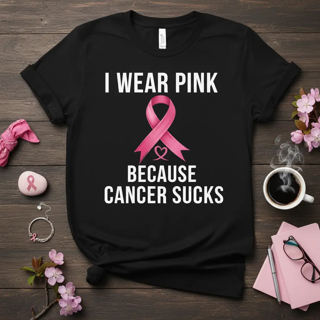 I Wear Pink Because Cancer Sucks Awareness T-Shirt