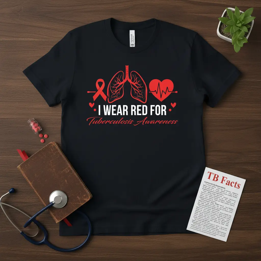 Embrace the opportunity to make a difference by wearing your support for tuberculosis awareness. This t-shirt is designed not only to look good but to do good, sparking conversations and encouraging action. It’s a powerful tool for education and advocacy, helping to shed light on the importance of combating tuberculosis worldwide. Get your “I Wear Red For Tuberculosis Awareness” t-shirt today and become a visible part of the solution.