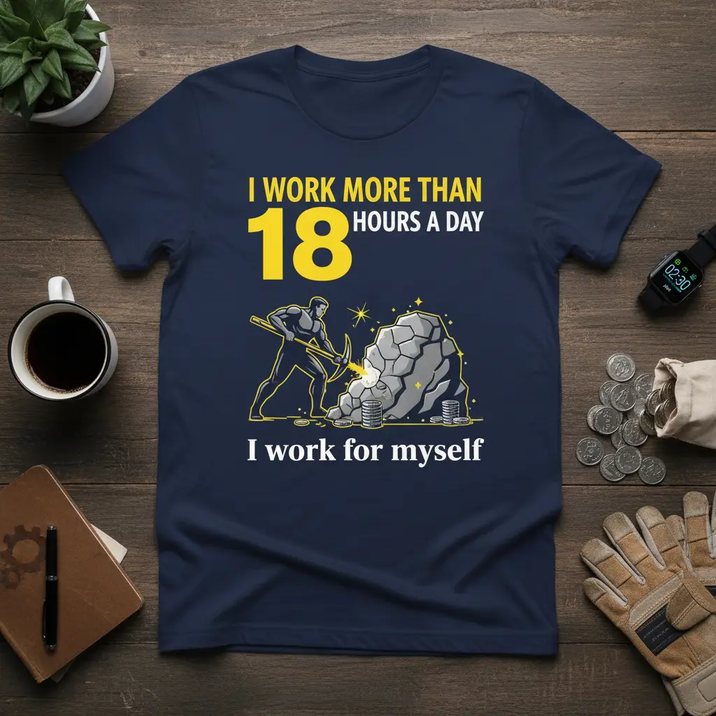 I work more than 18 hours a day I work for myself is more than just a slogan; it’s a badge of honor for the driven, the ambitious, and the self-made. This t-shirt is designed for the entrepreneur, the small business owner, the freelancer, and anyone who understands the sheer dedication required to build something from the ground up. It speaks to the late nights, the early mornings, and the relentless pursuit of a dream that defines the independent spirit. Wear your commitment proudly and let the world know you’re building your own empire, one hour at a time.