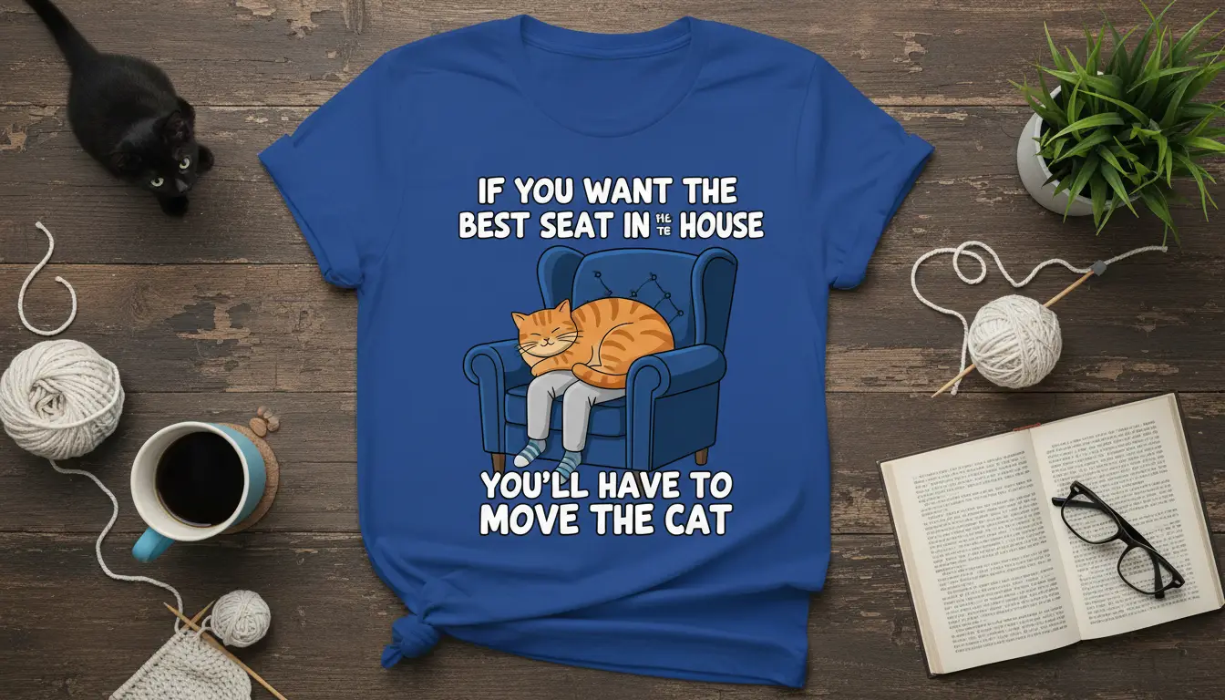 If You Want The Best Seat In The House You’ll Have To Move The Cat, this t-shirt is your ultimate declaration of feline devotion. It speaks to the heart of every cat owner who has ever tried to claim the most comfortable spot, only to find it already occupied by their beloved, yet demanding, pet. This design perfectly encapsulates the humorous reality of sharing your living space with a cat that believes it owns everything. It’s more than just apparel; it’s a badge of honor for those who understand the unspoken rules of a cat-ruled household. Get ready to share a knowing smile with fellow cat enthusiasts who recognize this all-too-familiar scenario.