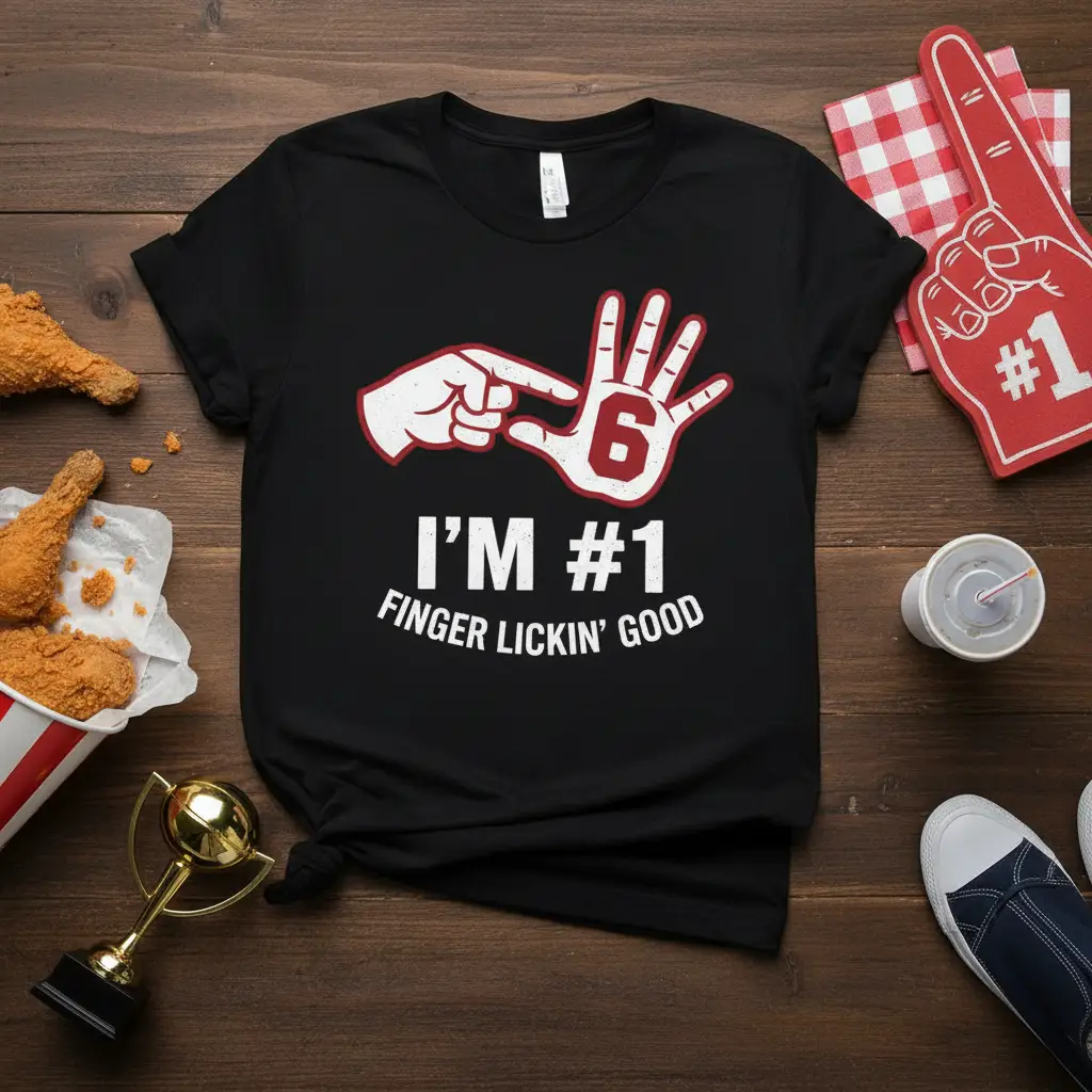 This “I’m #1 Finger Lickin’ Good” t-shirt is more than just clothing; it’s a way to express your personality and your passion for amazing food. The clever design and memorable slogan make it a standout piece that’s sure to get noticed. It’s perfect for those who love to express themselves through their attire and enjoy a good laugh.
