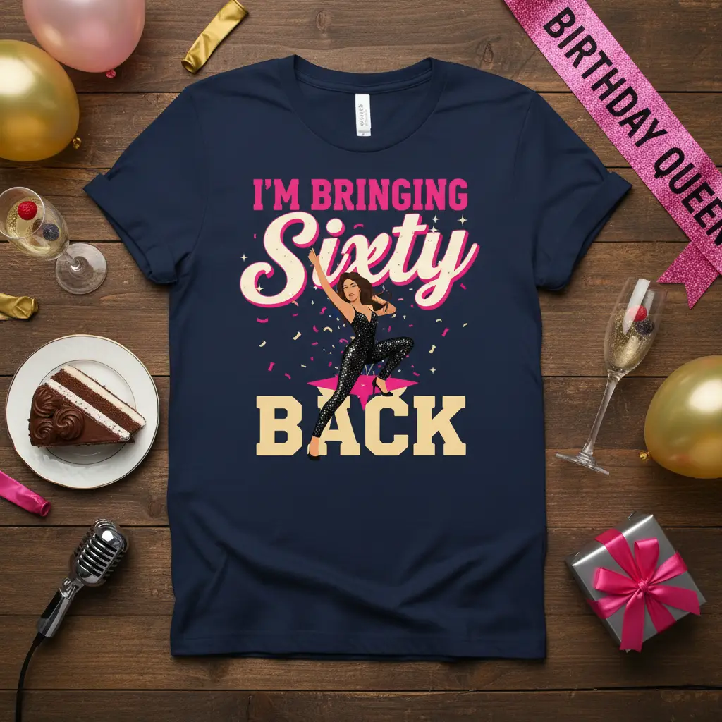 The imagery of a confident dancer, adorned in sparkling attire, embodies the energy and zest for life that comes with reaching this fabulous age. It’s a visual representation of embracing the moment and owning your journey. This I’m Bringing Sixty Back design is crafted for those who believe that age is just a number and that sixty is the new fabulous.