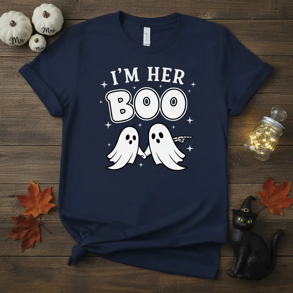 The “I’m Her Boo” shirt is designed to be a conversation starter and a cherished part of your Halloween traditions. Its simple yet effective design makes it universally appealing to couples who want to share a fun, themed look. This tee is ideal for creating memorable moments and taking adorable photos throughout the Halloween season.