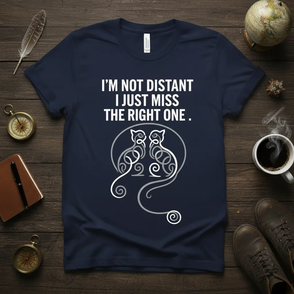 I’m Not Distant I Just Miss The Right One, this witty phrase is emblazoned on a comfortable, stylish t-shirt designed for those who appreciate a good laugh and have a special place in their heart for our feline friends. The design features a clever play on words, hinting at the complexities of relationships and the universal search for that perfect connection. It’s more than just apparel; it’s a statement piece that sparks conversation and showcases your unique sense of humor and your love for cats. Perfect for casual outings or cozy nights in, this tee is sure to become a favorite.