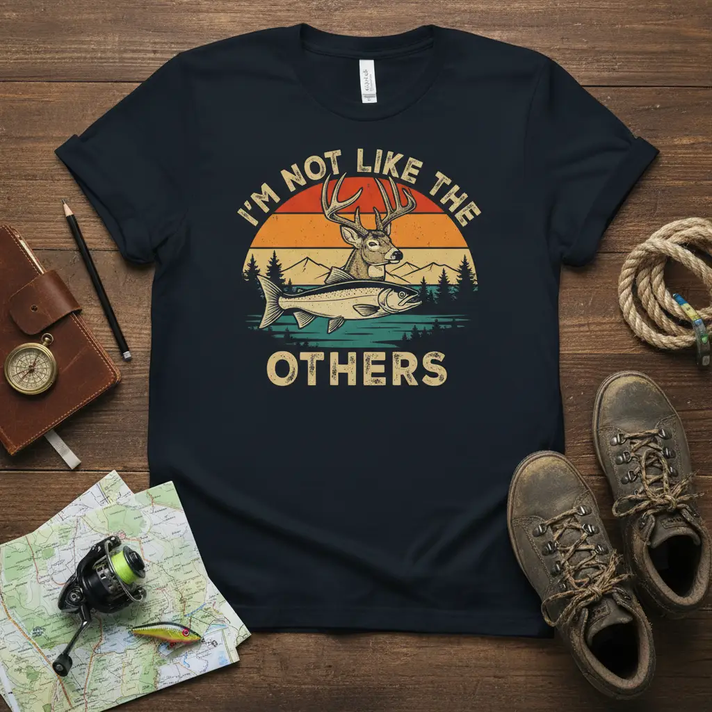 I’m Not Like The Others, and this t-shirt is the perfect way to express that unique spirit. Designed for those who feel a deep connection to the wild, this tee boldly states your individuality. It features a captivating graphic that blends the thrill of the hunt with the serenity of the catch, all set against a nostalgic, retro sunset. This shirt isn’t just apparel; it’s a statement piece for anyone who finds their true self amidst the trees and on the water. Show the world you march to the beat of your own drum with this distinctive design.
