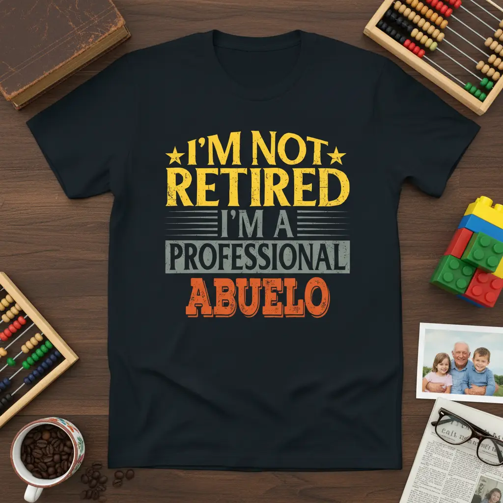 This unique t-shirt celebrates the transition into a new phase of life with humor and pride. The phrase “I’M NOT RETIRED I’M A PROFESSIONAL ABUELO” perfectly encapsulates the spirit of many grandfathers who find their retirement filled with the important work of being an Abuelo. It’s a fantastic way to express your identity and share a bit of your personality with the world.