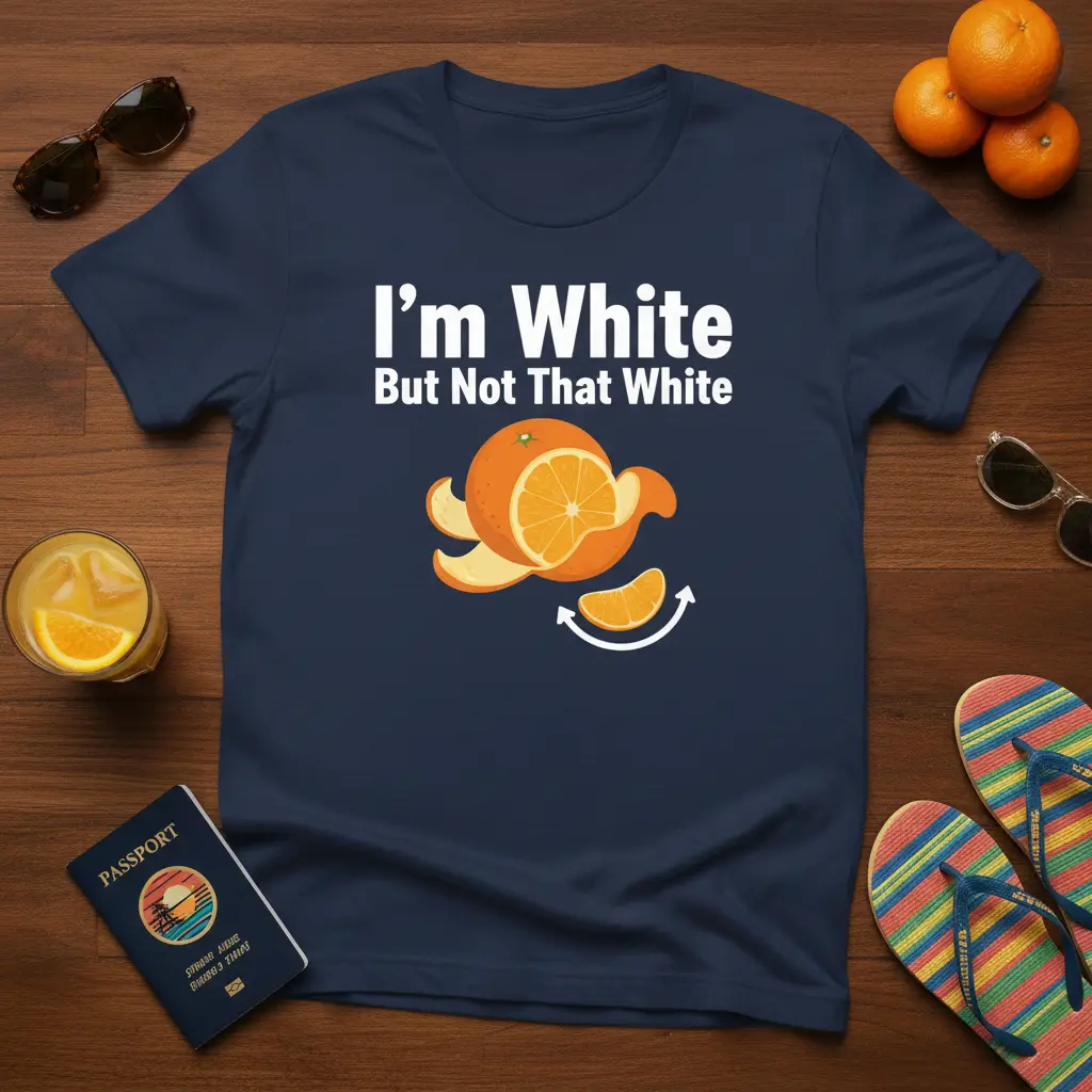 This t-shirt is more than just apparel; it’s a conversation starter. The witty phrase “I’m White But Not That White” taps into a shared cultural understanding, making it instantly relatable and humorous. Paired with the vibrant orange graphic, the design exudes a playful and lighthearted vibe. It’s perfect for individuals who aren’t afraid to show off their personality and enjoy a good dose of sarcasm in their everyday style.
