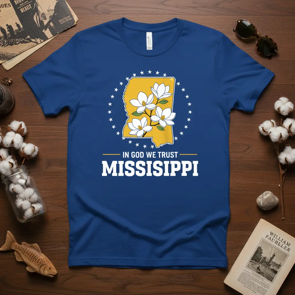 The phrase “In God We Trust” is a cornerstone of American identity, and its placement on this Mississippi-themed shirt resonates deeply. It speaks to faith, unity, and the foundational beliefs that shape the state and the nation. This In God We Trust Mississippi design is perfect for expressing a sense of belonging and shared values, making it a meaningful piece for any wardrobe.