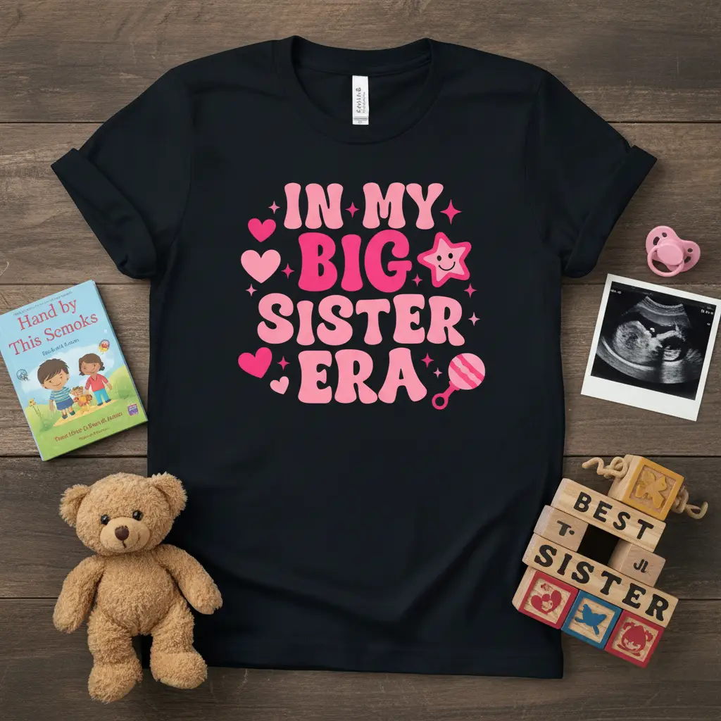 The “In My Big Sister Era” T-Shirt is the perfect way for your little one to embrace their new role. This adorable tee features a fun, retro-inspired design that celebrates becoming a big sister. It’s a comfortable and stylish way for them to announce their exciting new chapter.